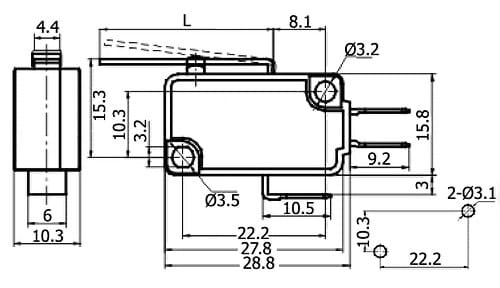 mikrowyłącznik - blaszka średniej długości